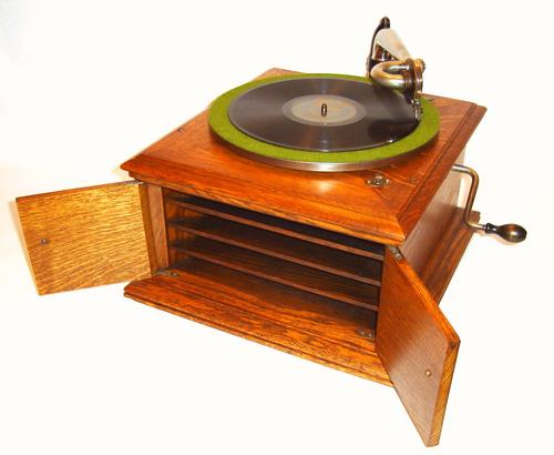 Victor introduced the Victrola VI in 1911 at a price of $25, which proved to be a very popular model for the company.  This particular VV-VI, serial number 137725F, was made in 1915 and is in superb condition.